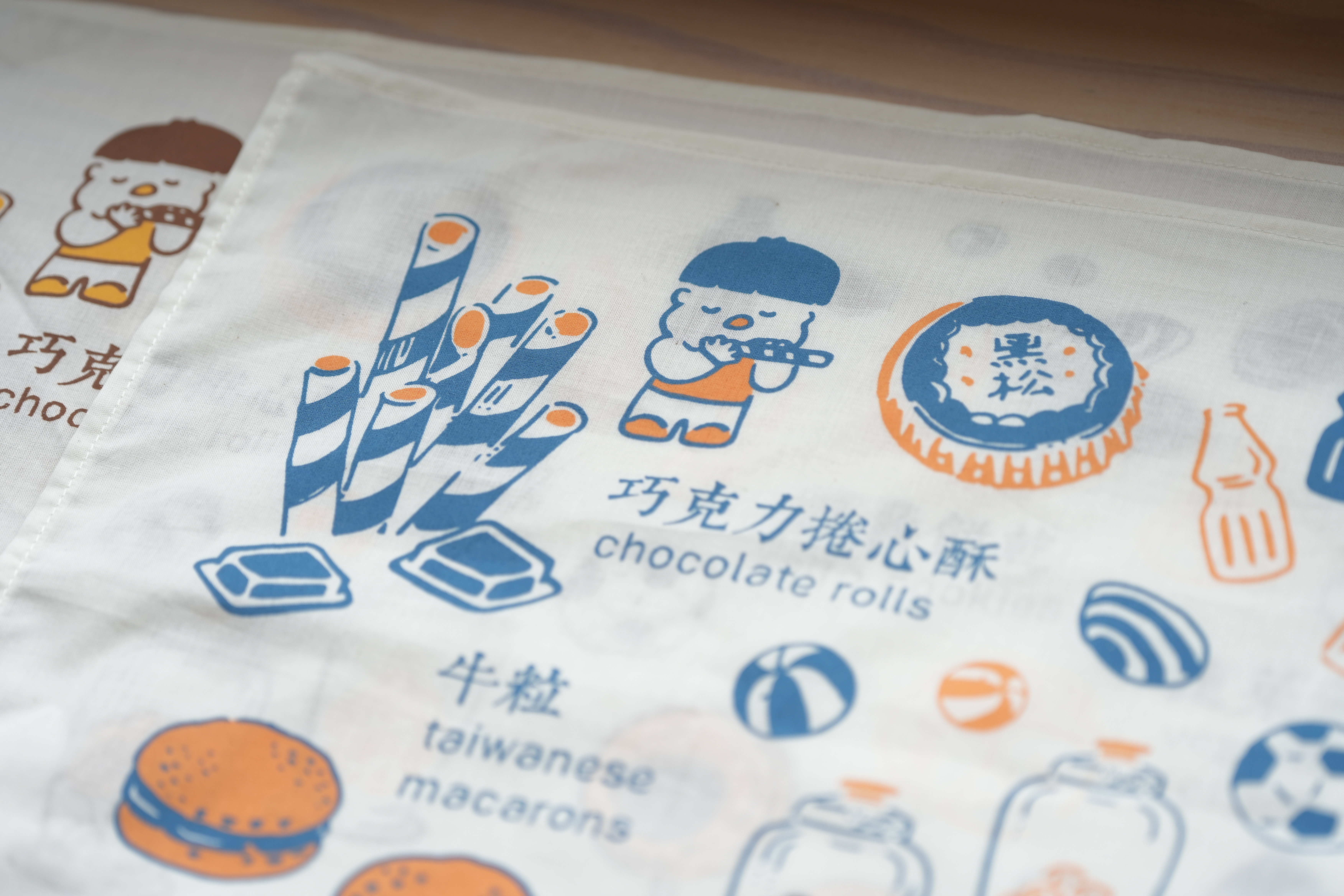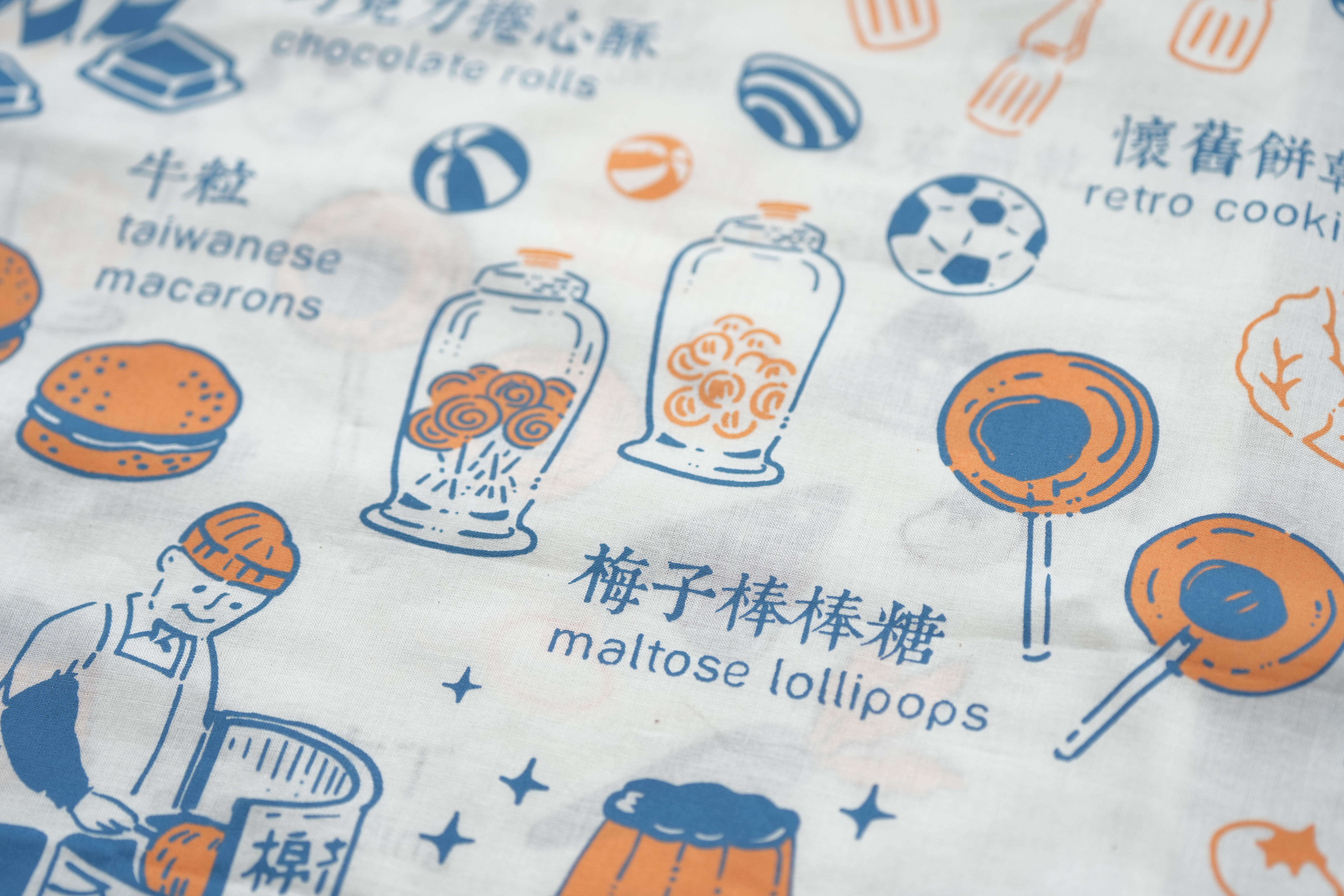 【印花楽/in Blooom】ハンカチ・おいしい台湾懐かしいお菓子 /ブルーオレンジ